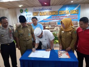 Walikota Bengkulu Helmi Hasan saat Sosialisasi Unit Maintenance Centre (UMC) sekaligus penandatanganan komitmen pelaksanaan UMC di Hotel Rafles City, Senin (12/08/2019).